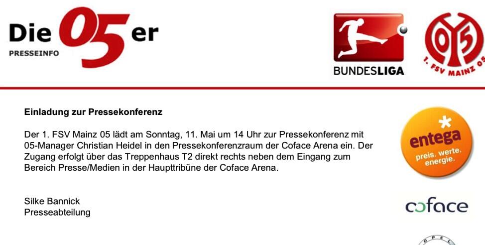 Ich finde es übrigens zu 100% richtig, ihn bei der PK auszuladen, denn die PK ist Veranstaltung von Mainz 05 und ich bin mir sicher, dass der Verein ihn formell freigestellt hat, also kann er daran auch nicht teilnehmen.